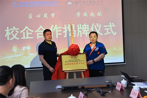 在校企雙方共同見證下,校企雙方共同為“現(xiàn)代學(xué)徒制試點單位”、“校企合作實訓(xùn)基地”和“林浩技能大師工作室”揭牌。