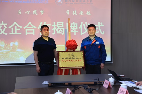 為進一步深化校企合作,實施人才強企戰(zhàn)略,實現(xiàn)校企合作共贏、共謀發(fā)展的美好愿景。2023年5月12日,公司與煙臺城鄉(xiāng)建設(shè)學(xué)校舉行校企合作揭牌儀式,在公司三樓第一會議室舉行。公司黨委書記、常務(wù)副總經(jīng)理崔文剛,工會主席陳瑋,企業(yè)管理中心副主任王德祥,技師工作站站長林浩,校方教學(xué)分管領(lǐng)導(dǎo)張昌勇,國信部主任馮濤等一行5人,近年對我司人才招引工作給予大力支持的市直機關(guān)工委副書記蘇小峪、市委財經(jīng)辦秘書科科長王衍應(yīng)邀出席本次揭牌儀式。