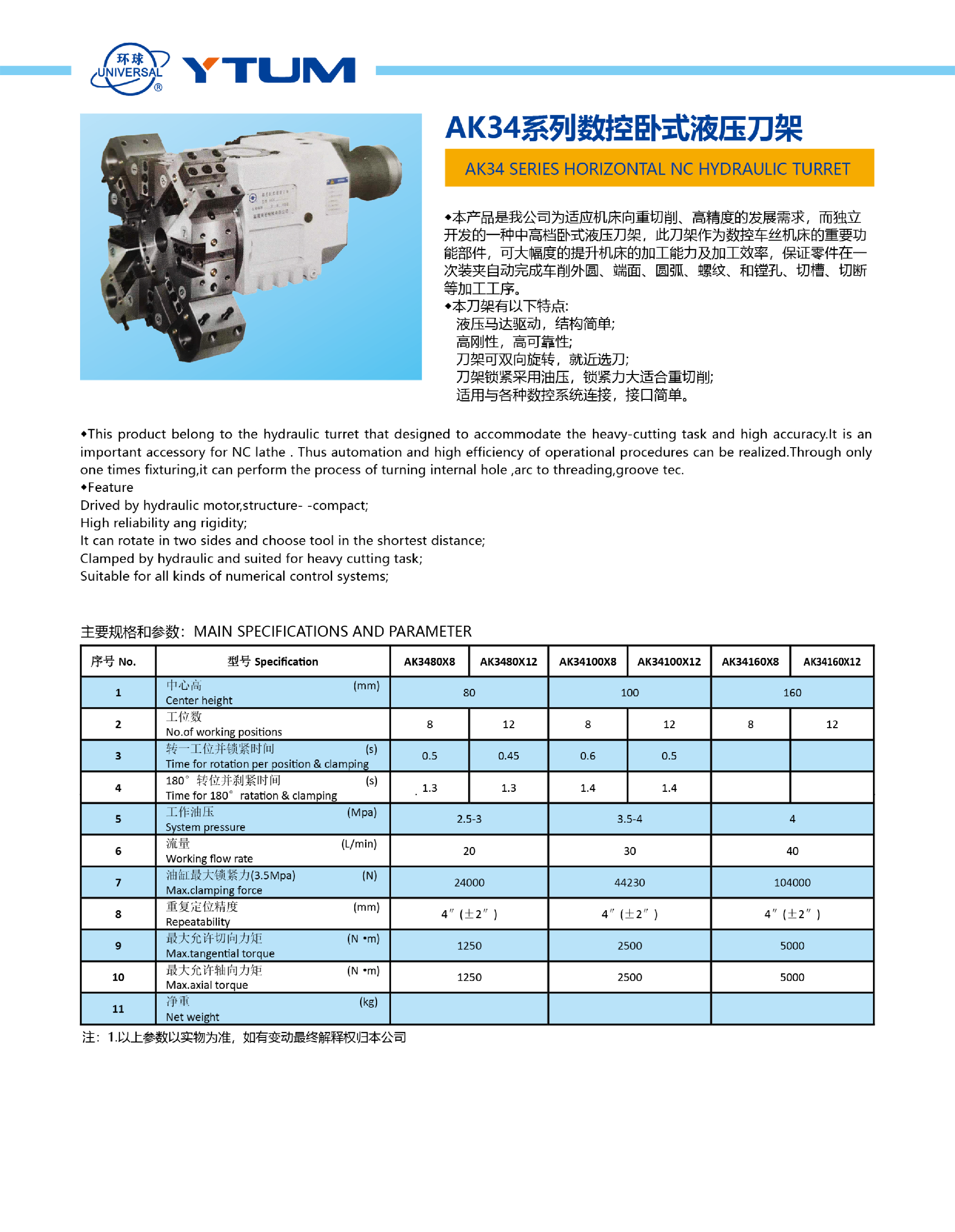 AK34系列數控臥式液壓刀架